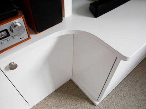 Existing sockets and electrics can be integrated into the bookcases or cupboards so you won't lose their function. We can also add cable management outlets to keep all your leads neat and tidy. Integrated lighting can be provided to highlight items on your bookcase and give depth to the shelves.